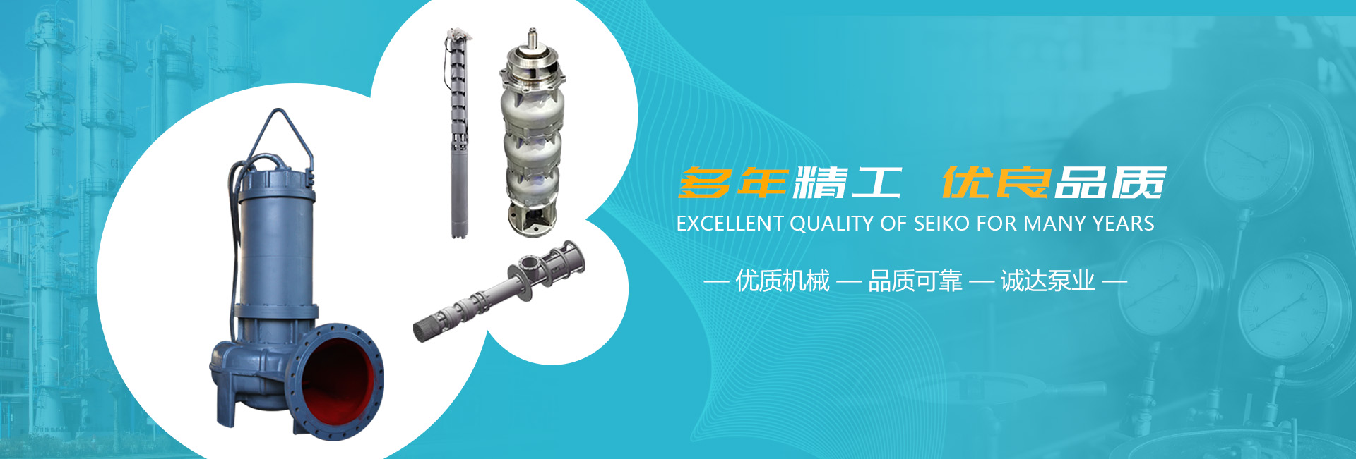 公司主要生產潛水軸(混)流泵、立式軸(斜)流泵、潛水排污泵、井用潛水泵、礦山專用泵、不銹鋼水泵、化工流程泵、立式長軸泵、管道泵、無密封液下泵等,并提供管件、閥門、電控柜、電力設備等系統配套設施。